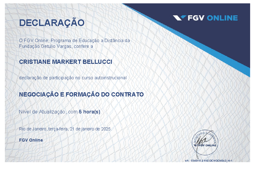 NEGOCIAÇÃO E FORMAÇÃO DO CONTRATO